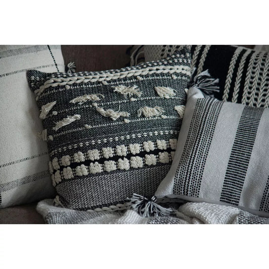 Foreside - Black Striped Hand Woven 18x18" Cotton Decorative Throw Pillow