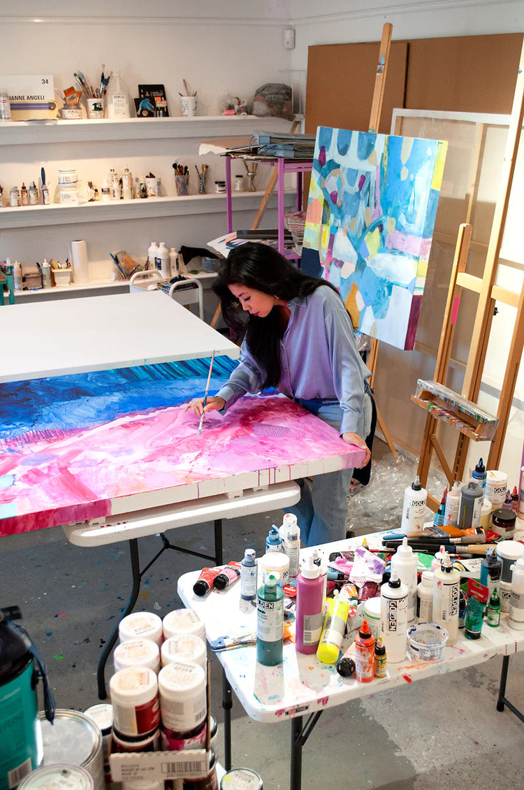 Filipino-American artist Marianne Angeli Rodriguez is an abstract contemporary painter based in Covington, Louisiana. Due to her parents’ work with the United Nations, Marianne spent 15 years living abroad in West Africa, Central America, Europe & Asia before landing in the US. Marianne went on to study in New York where she obtained a B.A. in media studies & anthropology from the City University of New York at Hunter College, and a degree in fashion design from FIT.