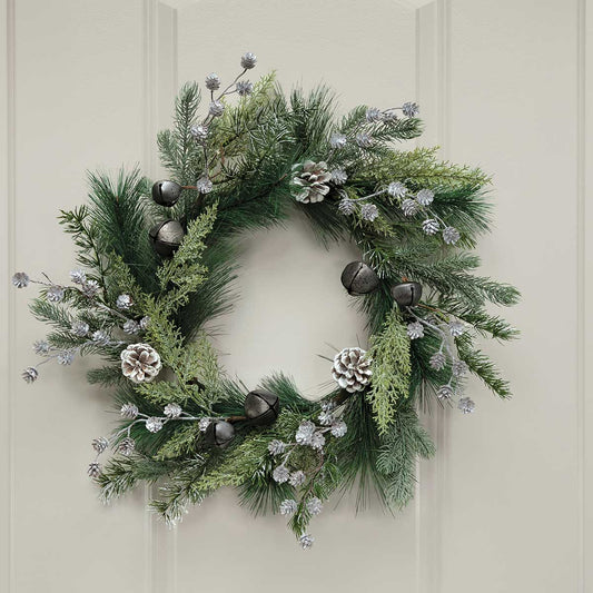 Pine Wreaths with Pewter Bells and Pinecones