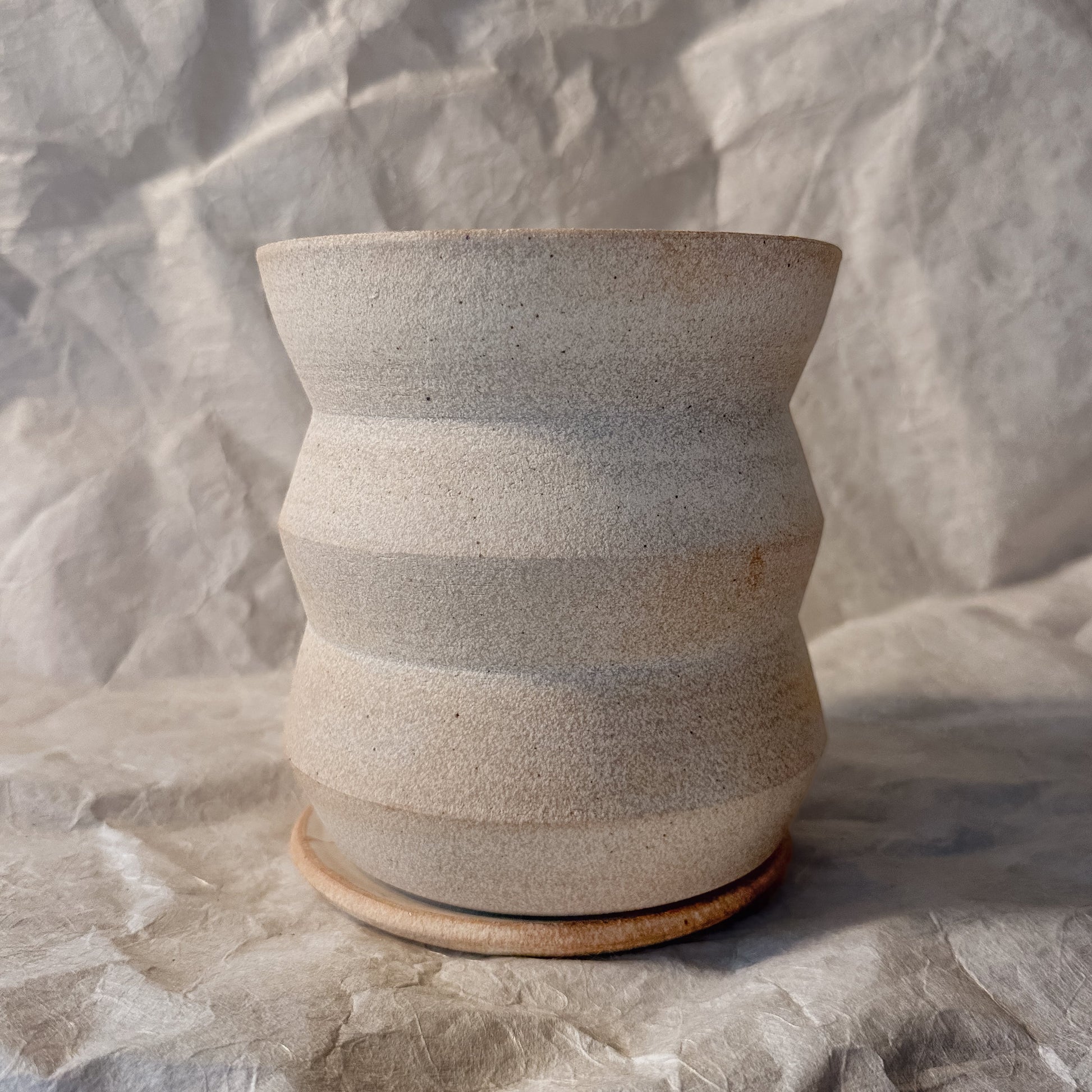Olivia Snow Ceramics - 6" Angled Creme Planter with Saucer and Drainage