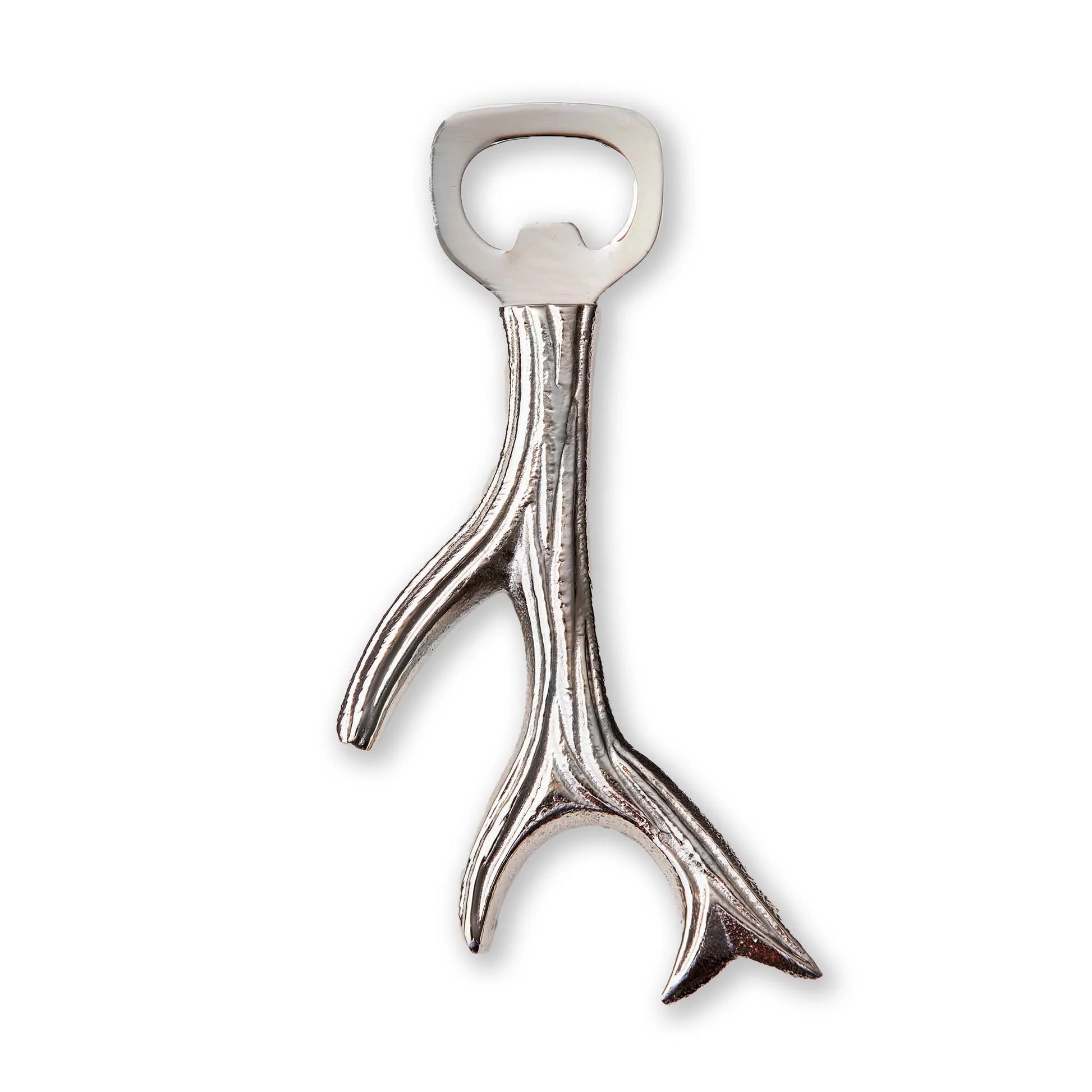 This unique antler bottle opener is a perfect addition to any home bar or kitchen. Made from durable aluminum, it's both functional and stylish.