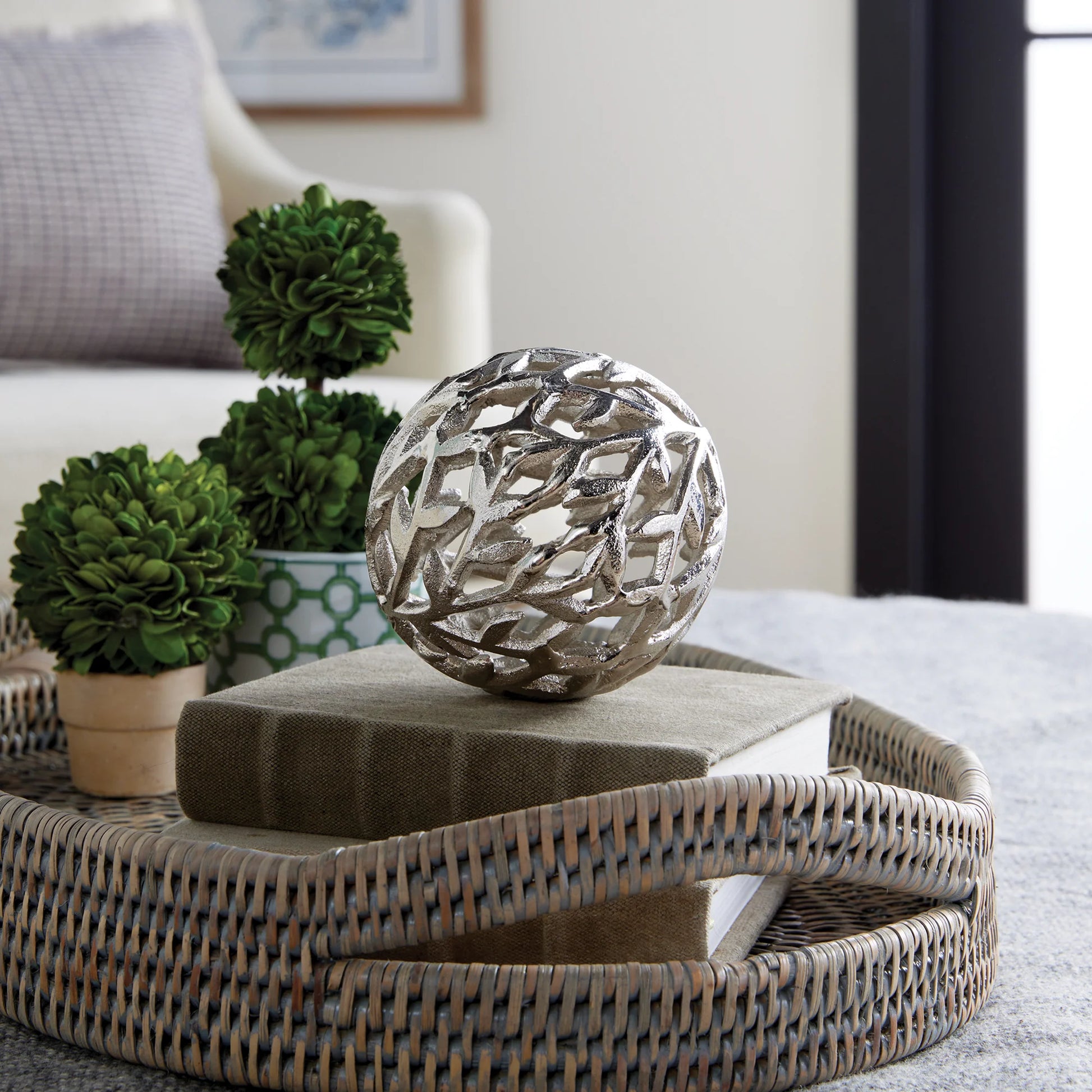 A whimsical, flowing vine motif makes up the open pattern of this decorative orb. Tuck into a bookshelf, or fill a bowl with a few for an elevated look.