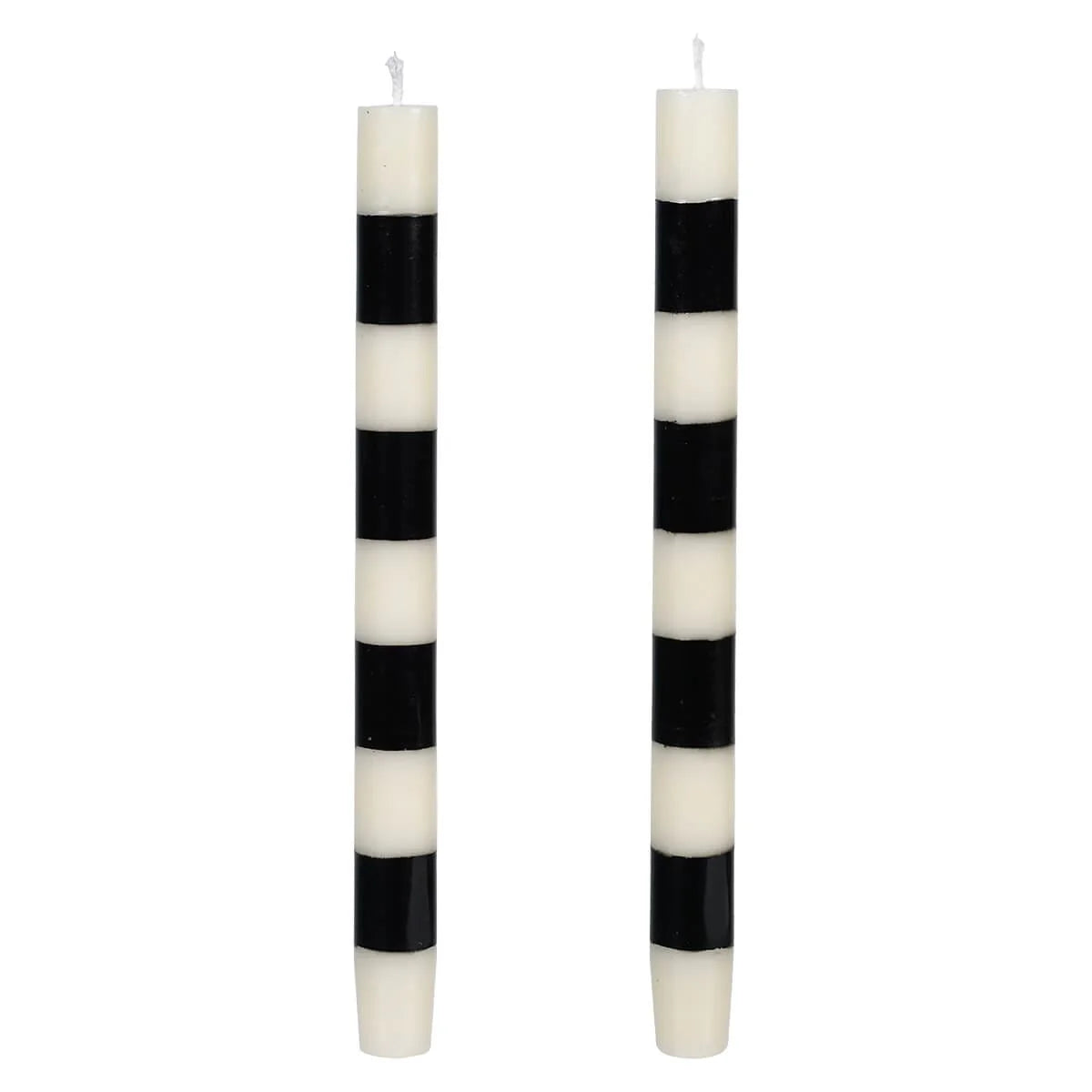 This set of 2 Black & White taper candles in this Fall and Halloween season . The candles are made from 100% paraffin wax and feature a Black & white Stripe color. the candles are perfect fo.r both indoor and outdoor use.