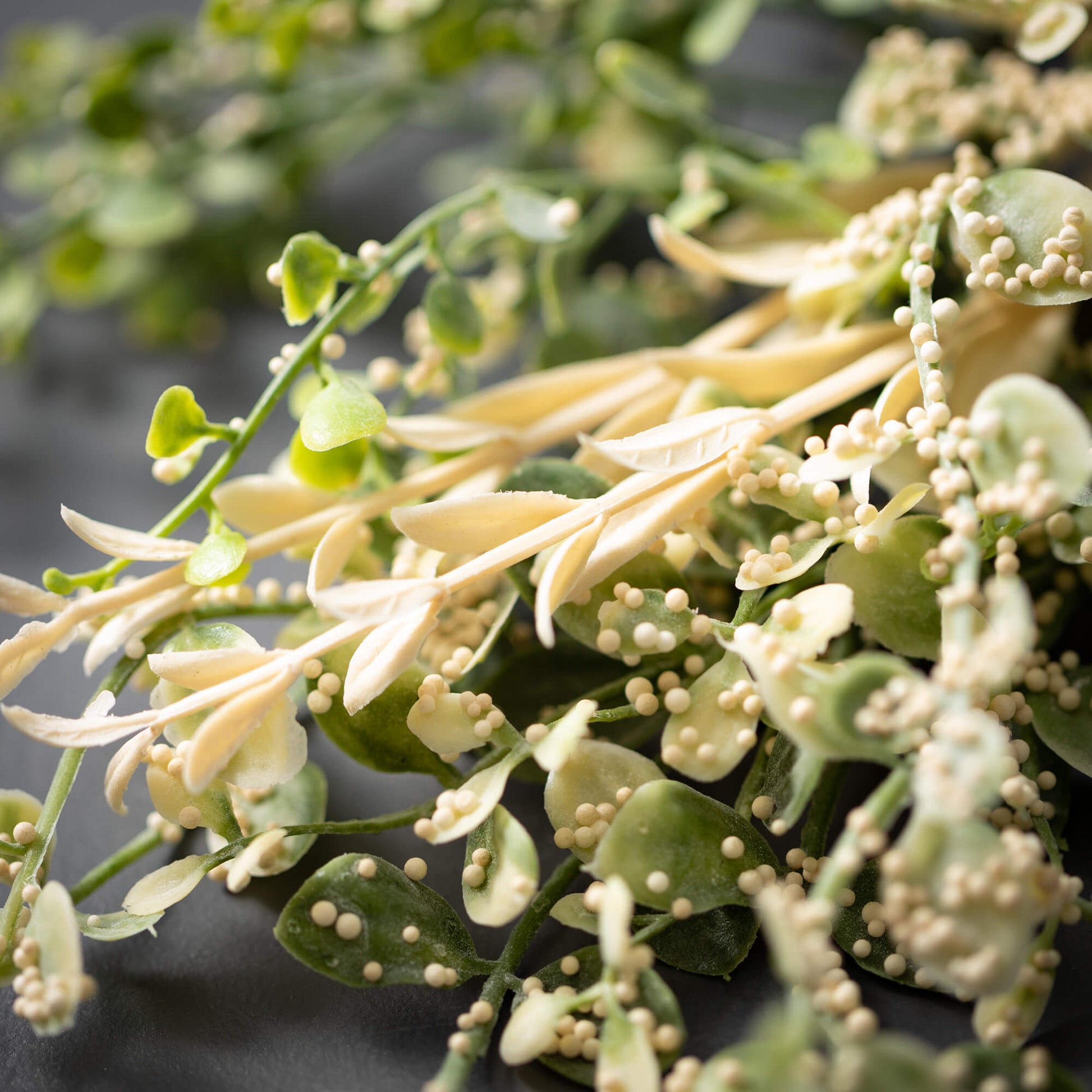 Featuring the warm greens of boxwood and the creams of tea leaves, this pick makes a beautiful accent to any style of decor. The perfect accent for any mantel, shelf, or existing arrangement, this pick is versatile enough to stay on display all year round.