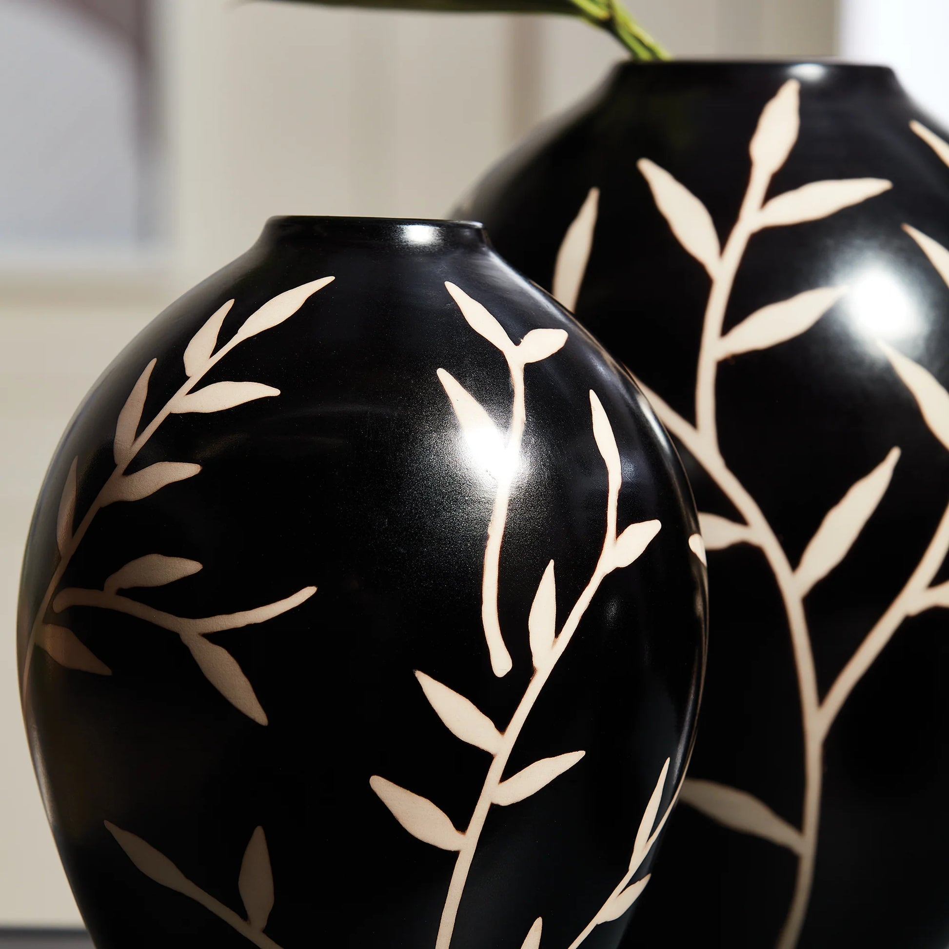 Made in Northern Peru using a classic batik process, the delicate vine motif is applied, then after firing, a paleta or wooden tool is used to gently remove it, revealing the raw clay below. In a Chulucanas tradition, the firing process involves smoked mango leaves, which has a resin that infuses the rich black pigment and shine.