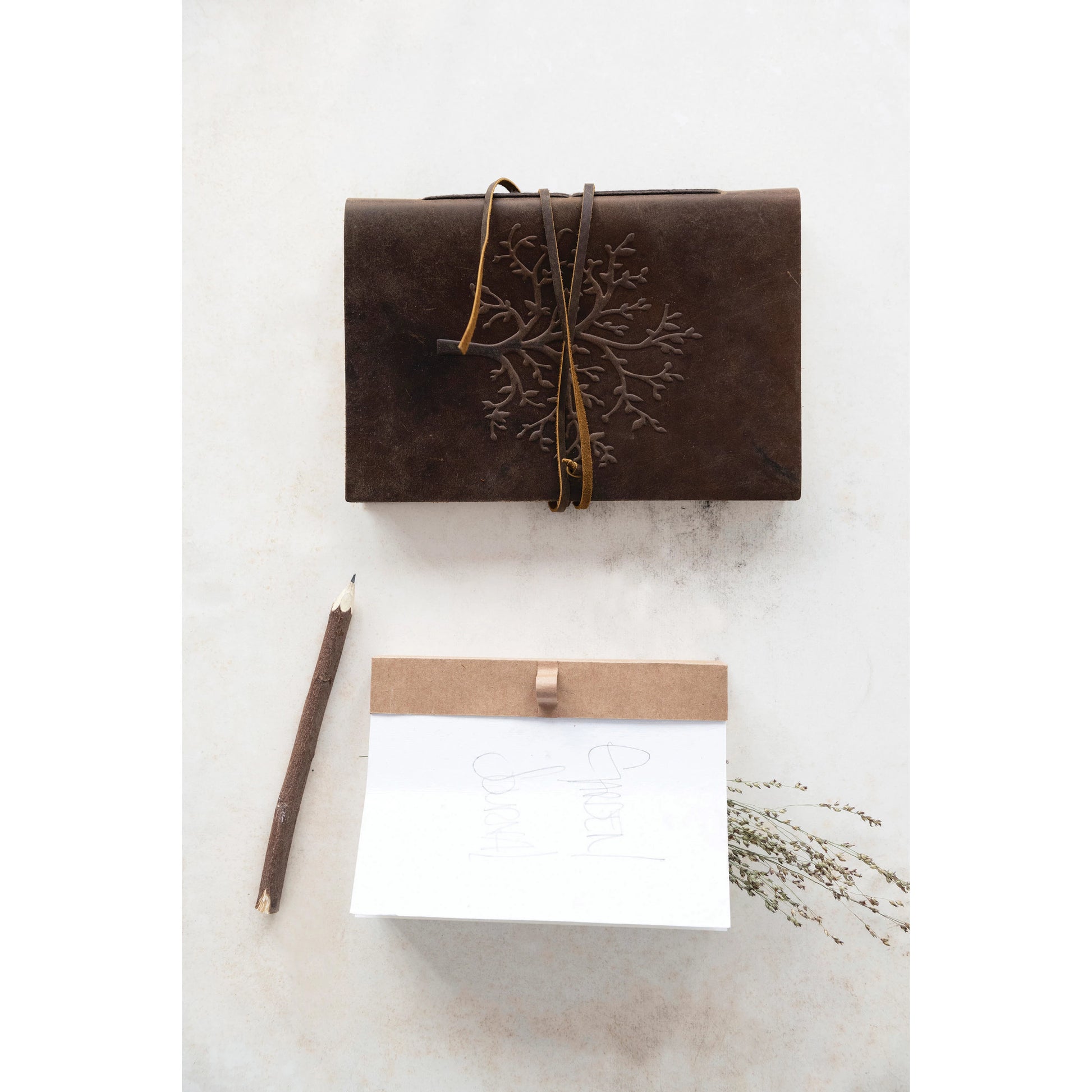 Creative Co-op - Leather Bound Journal w/ Handmade Paper, Embossed Tree & Tie