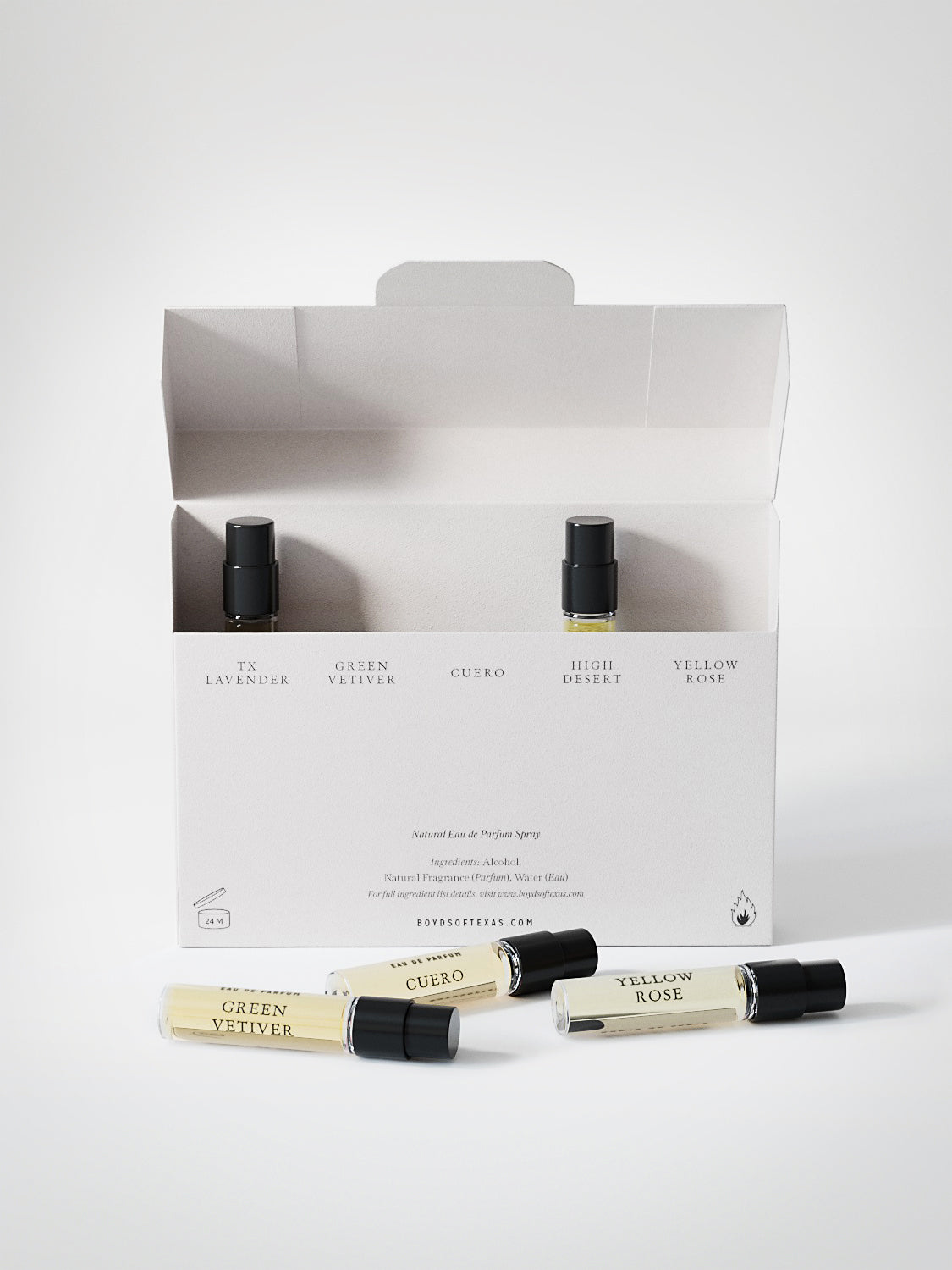Want to sample each of our natural edp (eau de parfum) fragrances before choosing? This set allows you to test each of the scents. Each sample includes roughly 5-14 days worth of wear.