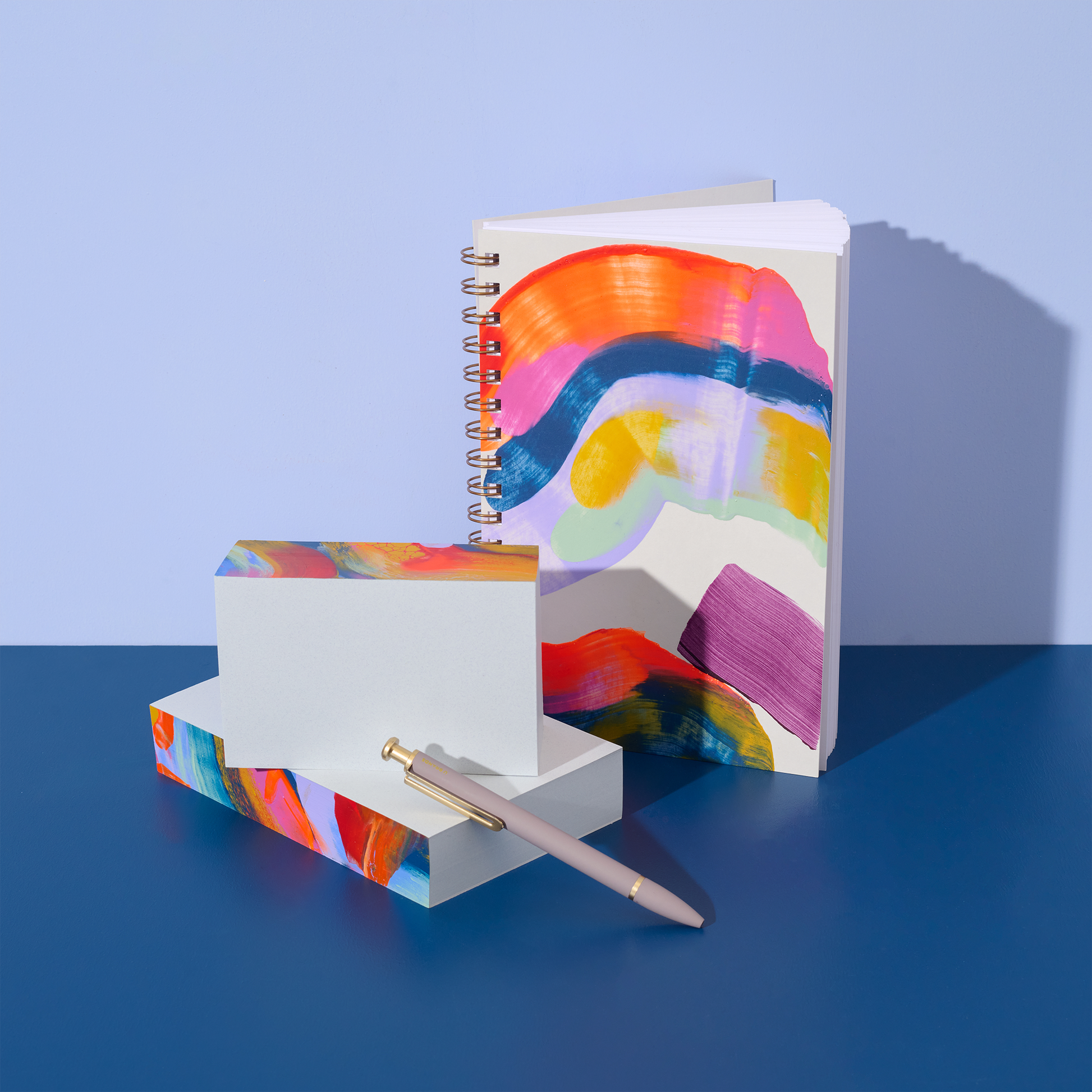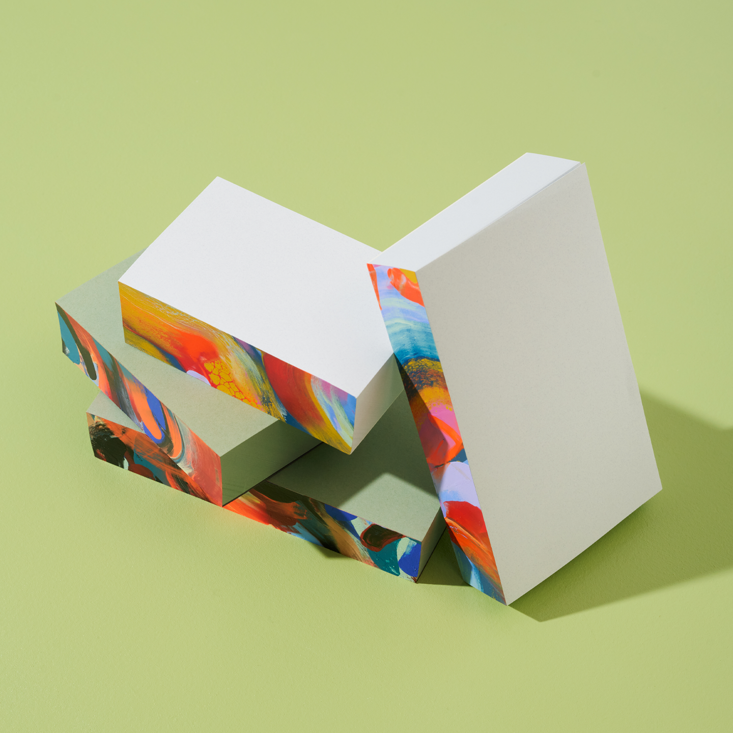 Notepad with one-of-a-kind swirl painted gummed edge.
