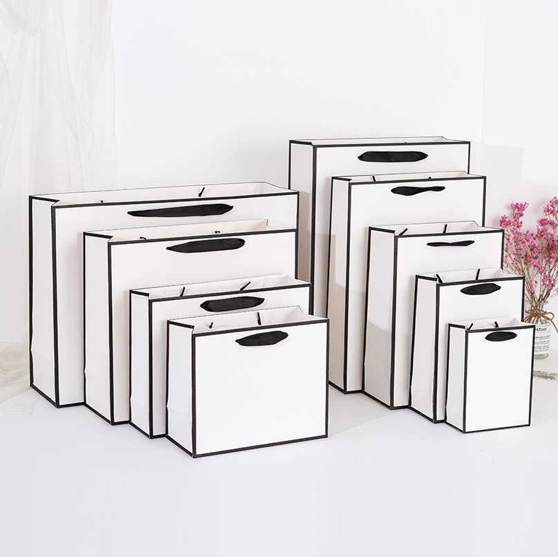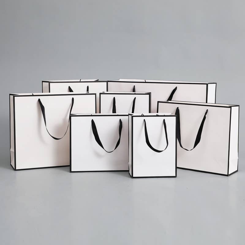 Each bag can support weights ranging from 3 kg to 8 kg. These stylish bags feature a sleek black border, adding a modern, elegant touch. Each set also comes with free tissue paper, making it easy to wrap your gifts beautifully, offering both elegance and convenience for your packaging needs. Not ideal for heavy objects (our non-woven bags are designed for heavy loads).