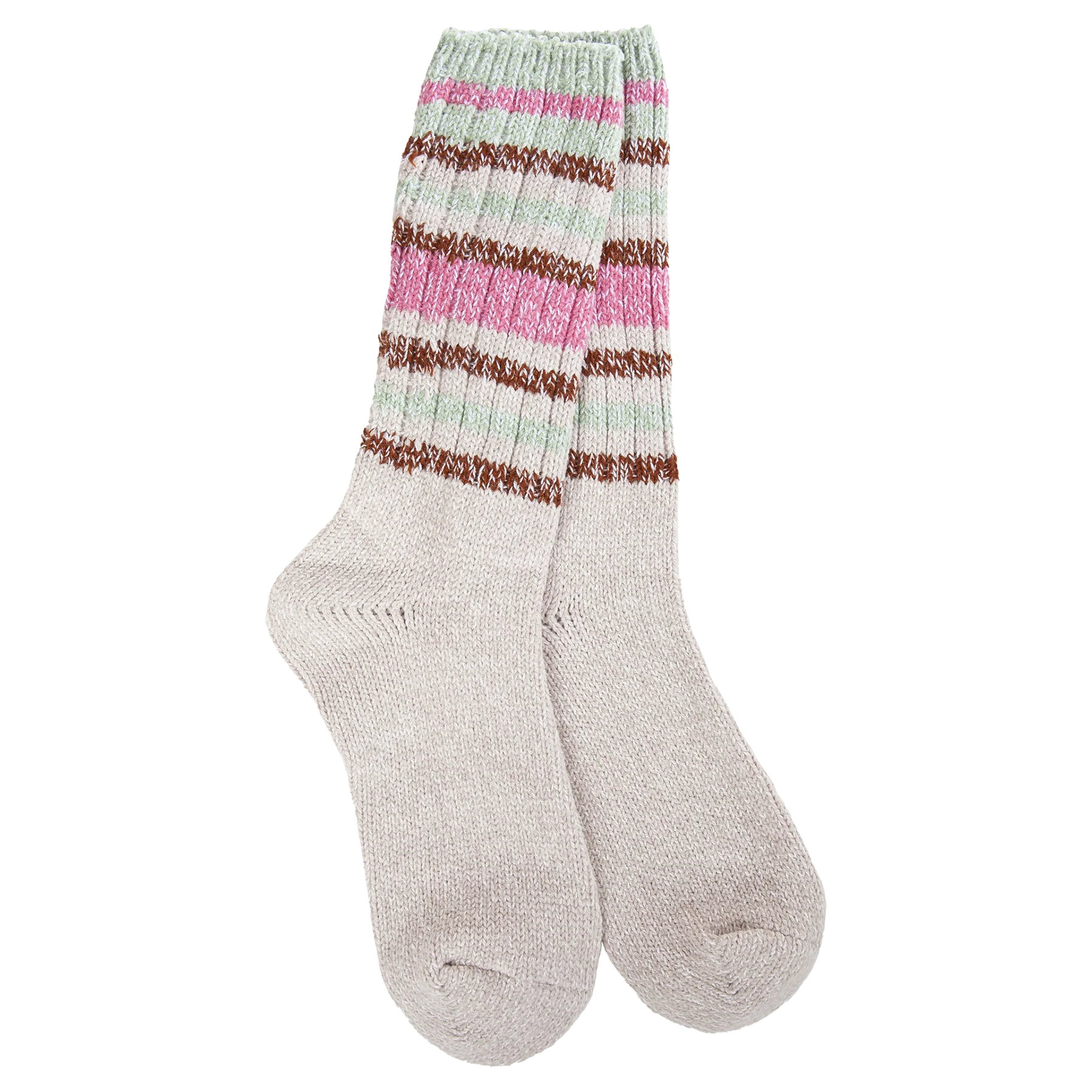 World's Softest Socks - Women's Weekend Ragg Crew Stripe. Mushroom Stripe